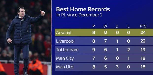 Arsenal neprehral v 14 domácich zápasoch v rámci Premier League za sebou a v ostatných 8 odohraných stretnutiach vždy bodoval naplno. Táto séria sa začala decembrovým víťazstvom 4:2 v severolondýnskom derby.