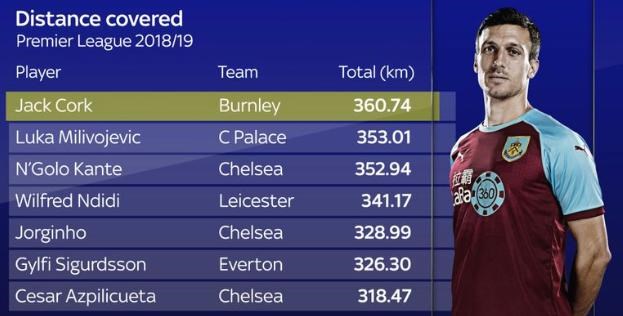 Záložník Burnley nabehal v tejto sezóne viac ako 360 kilometrov, čo je o sedem kilometrov viac ako má na konte Luka Milivojevic z Crystal Palace.