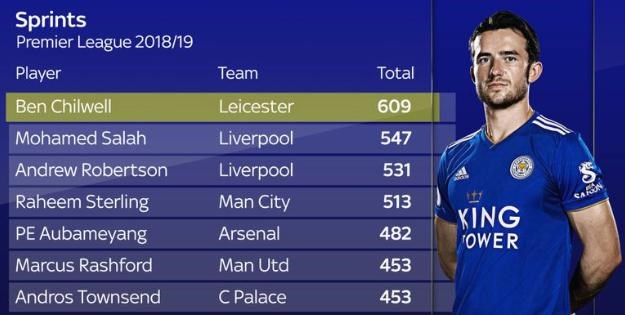 Ľavý obranca líšok je aktuálne na čísle 609, čo je až o 62 šprintov viac ako má na konte druhý hráč v poradí, ktorým je útočník Liverpoolu Mohamed Salah (547).