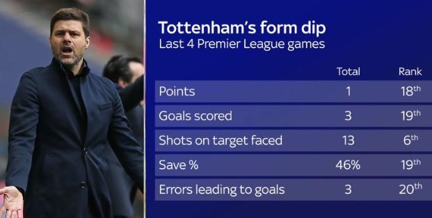 Iba dva kluby Fulham a Burnley, ktoré aktuálne riešia záchranárske práce, nazbierali v ostatných štyroch ligových zápasoch menej bodov ako Spurs a iba Cardiff Neila Warnocka vsietil menej gólov.