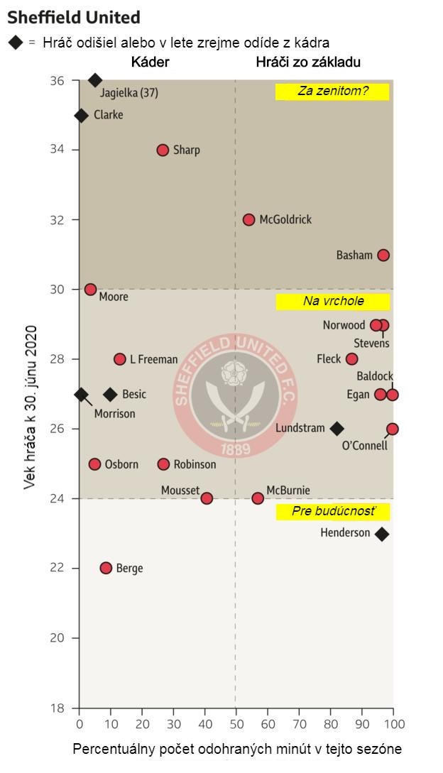 Podobne ako Wolves, aj Sheffield United má výborne zohranú základnú kostru tímu. Deväť hráčov odohralo viac ako 80 percent celkového hracieho času.