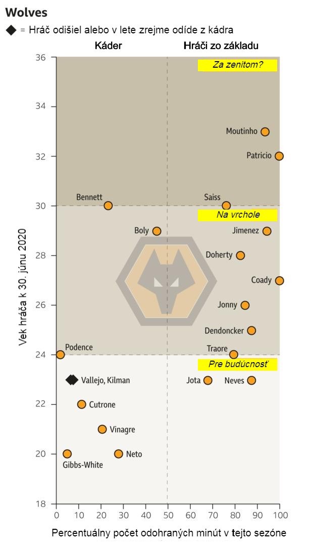 Jedenásť hráčov vlkov odohralo v tejto sezóne minimálne dve tretiny celkového hracieho času. Wolves majú veľmi dobre zohratý káder, ale musia zapracovať na jeho šírke. Manažér Nuno použil v sezóne iba dvadsať hráčov, čo je najmenej zo všetkých klubov v Premier League.