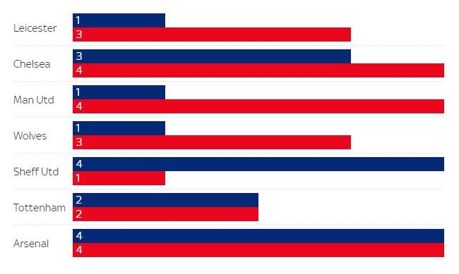 Londýnsky Arsenal čakajú tiež až štyria súperi z aktuálnej top šestky, ale zároveň aj rovnaký počet súperov z poslednej šestky.