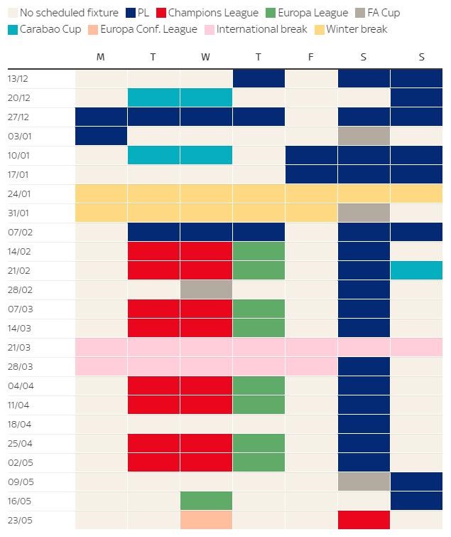 Chelsea navyše čakajú povinnosti na Club World Cup-e. Turnaj v Spojených arabských emirátoch sa hrá medzi 3. a 12. februárom. Zápasy modrých proti Brightonu (8. februára) a Arsenalu (12. februára) musia byť preložené.