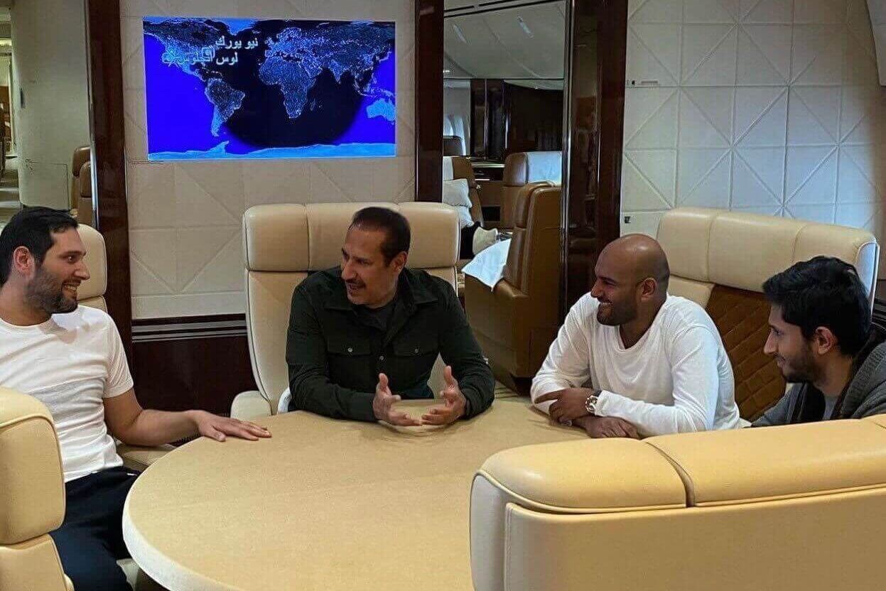 Napriek tomu na snímke, ktorá údajne vznikla pred štyrmi alebo piatimi rokmi a ktorá v poslednom čase koluje medzi skupinami priaznivcov Manchesteru United, vyzerá Jassim uvoľnene, keď sa rozpráva v súkromnom lietadle letiacom medzi Los Angeles a New Yorkom.