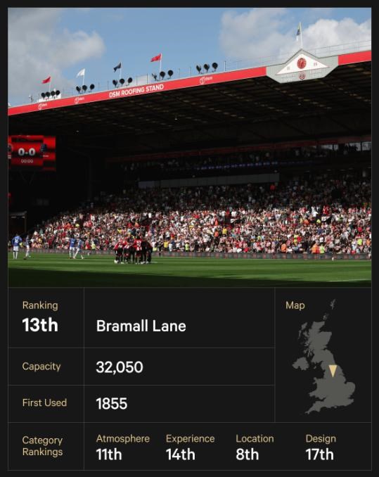 Bramall Lane je najstarší futbalový štadión na svete, na ktorom sa stále hrajú zápasy. Štyri tribúny priliehajú k bokom ihriska a čnejú nad dianím - a to aj napriek tomu, že bol pôvodne postavený na kriket. Nachádza sa v blízkosti centra mesta, ale je značne vzdialený od Hillsborough, kde hráva mestský rival Sheffield Wednesday. Má svoju históriu a charakter, má svoje zvláštnosti, ale pôsobí aj veľmi dobre udržiavaným dojmom. Drevené sedadlá južnej tribúny boli odstránené až v roku 2005.
