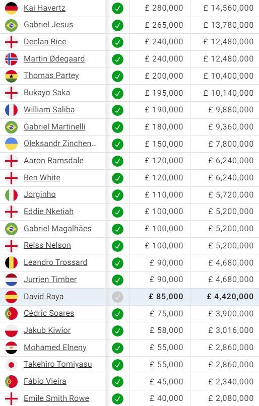 Nad 200 miliónov týždenne sa vyšplhali aj útočník Jesus, kapitán Odegaard, záložník Partey a drahá letná posila z West Hamu Rice.