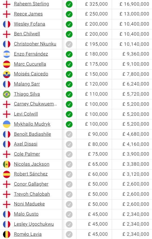 Chelsea pod novým majiteľom prečistila káder a zbavila sa (takmer) všetkých vysokozarábajúcich hráčov, okrem Sterlinga, ktorý je na šiestej priečke.