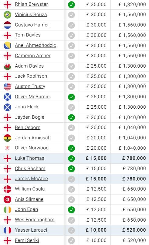 Bývalý hráč Liverpoolu Rhian Brewster je najvyššie v mzdovom rebríčku šablí s platom 35-tisíc libier za týždeň.
